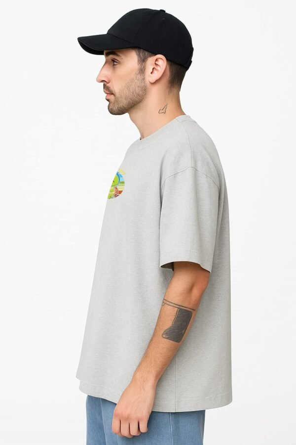 Embrace effortless style with The Chill Turtle Oversized Tee, the ultimate piece for a relaxed, casual look. This light gray t-shirt is designed with a modern oversized fit and drop shoulders, ensuring maximum comfort and a streetwear-inspired silhouette. The subtle yet vibrant graphic on the chest features an adorable cartoon turtle set against a retro, colorful sunset background, adding a unique, summery ‘tropic chill’ vibe. Crafted from a soft and breathable fabric, it’s perfect for everyday wear, whether you’re pairing it with shorts, jeans, or layering it up. This versatile tee is available in a full size run from S to XXL.